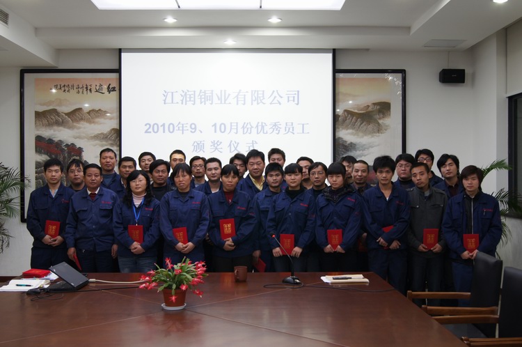 2010年11月14日,公司召開優秀員工表彰大會,駱偉棟總經理分別為九月、十月優秀員工頒發榮譽證書。